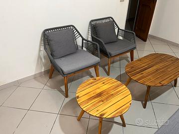 Vendo set salotto relax della Kaeming da giardino o veranda modello Seville in legno e tessuto, naturale e grigio antracite. Stile moderno