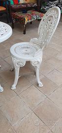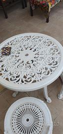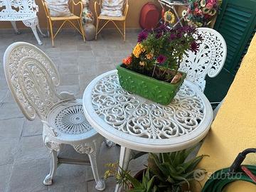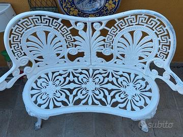 Set da giardino con panchetta in ghisa/ferro 2 posti, tavolinetto rotondo e due sedie in PVC, per visione e ritiro zona Casal de Pazzi.