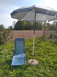 SET da spiaggia/ giardino in ottime condizioni come si può vedere dalle foto.formato da ampio ombrellone con tasca interna e base antivento,sdraio con telaio in alluminio e robusto tessuto impermeabile e antimacchia.