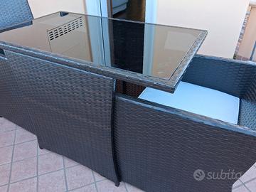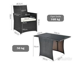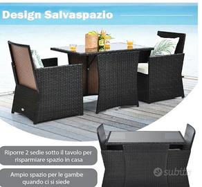 COSTWAY 3 Pezzi Set Mobili da Esterno, Set da Giardino in Rattan PE Salvaspazio con Piano Tavolo in Vetro Temperato e Sedie Imbottite, Tavolo e Sedia da Balcone