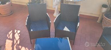Set da Giardino polyrattan,come Nuovo 2 poltroncine ,1 panchina ,1 tavolino basso regalo manca il vetro.. compresi di cuscini color Crema.Non trattabile