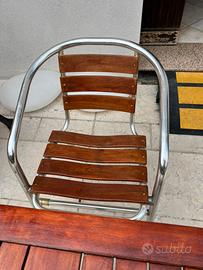 Vendo tavolo e due sedie allumionio e teak (legno) molto bello robusto appena trattato tavolo pagato 149 euro sedie 49 cada una vendo 150 euro non trattabile