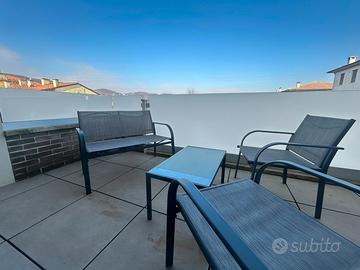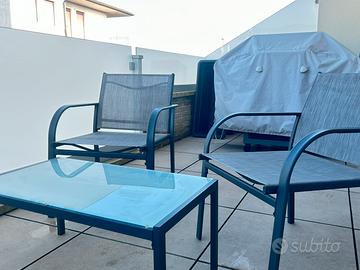 Completo da giardino / terrazza Divanetto 107x50 h42 , 2 sedie 50x50 h42 ed un tavolino con piano in cristallo 80x45 h38