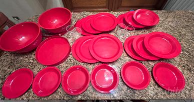 Set da pic nic anni 80 vintage in buono stato con scatola originale completo di 6 piatti piani 6 fondi 6 frutta 2 ciotole 1vassoio e 6 bicchieri manca oliera e saliera