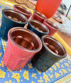 Set di 7 bicchierini da 9 cl.Colori 4 corallo, 2 blu/ verde petrolio e 1 kaki. Una notevole proprietà del materiale, l'alta resistenza agli urti, elevata resistenza ai graffi e finitura perfetta. La qualità dei materiali fanno sì che i prodotti Luminarc siano l'ideale per l'uso quotidiano. La collezione Carnaval è impilabile per una facile sistemazione, è realizzata in vetro temprato per resistere agli urti e contenere liquidi caldi fino a una temperatura di 130°C. INFO PRODOTTO Dimensioni: cm L6,2xP6,2xH6,4 Materiale: vetro Adatto per lavastoviglie Adatto per microonde Nuovi con cartellino. Spedizione accurata e veloce 📦 Guarda il mio armadio 🛍️🛍️
