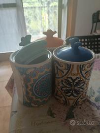 🍯| Set di 3 barattoli in ceramica con coperchio | Decorazioni colorate in stile mediterraneo 🧡💙💚 | Ideali per zucchero, caffè o spezie | Perfetti per dare un tocco elegante e vivace alla tua cucina ☕🌿