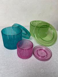 Set composto di 3 vasi con sottovasi: 1 Small rosa trasparente, 1 Medium turchese trasparente, 1 Large verde trasparente. Orchitop è un set costituito da un vaso per orchidee o altre piante provvisto di sottovaso, che si fissa al vaso con sistema ad incastro. Il sistema a paletti verticali consente lo sviluppo delle radici, come in natura, lascia passare la luce e fornisce un'aerazione ottimale del substrato, evitando muffe e marciume dell'apparato radicale. Robusti e durevoli, sono brevettati made in Germany e realizzati in policarbonato alimentare. Dimensioni vaso Small: diametro circa 10 cm, altezza circa 8 cm, spazio fra i paletti 3 mm circa. Dimensioni sottovaso Small: diametro circa 13 cm, altezza circa 2,2 cm. Dimensioni vaso Medium: diametro circa 13 cm, altezza circa 11 cm, spazio fra i paletti 3 mm circa. Dimensioni sottovaso Medium: diametro circa 17 cm, altezza circa 2,9 cm. Dimensioni vaso Large: diametro 18 cm, altezza 11 cm, spazio fra i paletti: 3 mm. Dimensioni sottovaso Large: diametro 20 cm, altezza 2,8 cm. Nuovi.