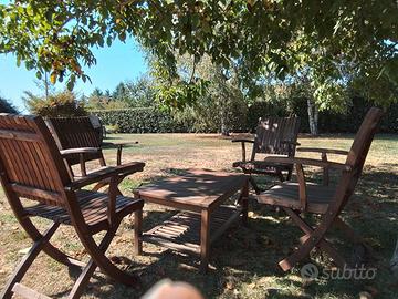 4 poltroncine richiedibile in legno più tavolino con ripiano no spedizione