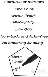 Set di 6 pennarelli indelebili neri, impermeabili, inchiostro premium.