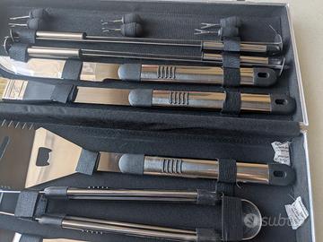 Set di attrezzi per barbecue 15 pezzi in valigetta alluminio, nuovo mai usato.