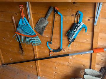 Set di attrezzi usati per manutenzione giardino (carriola, badili, rastrelli). DISPONIBILE A FINE FEBBRAIO per ritardo consegna casa. Vendo per sgombero casa.