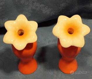 Set di due vasetti arancioni di ceramica. A forma di anfora con imboccatura a fiore❤️