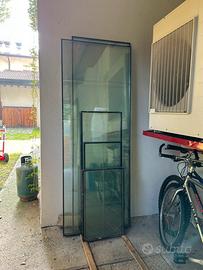 Set composto da n2 vetri 772mm x 2055mm, n2 464x735, n2 420x1060, n2 462x1330, n1 665x2105, spessore 20/22mm, sconsiglio la spedizione in quanto il peso é notevole e quindi risulterebbe maggiore del costo dei vetri stessi.