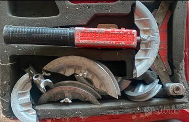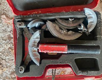 Vendo vista e piaciuta set di piegatubi a cricco manuale con matrici/segmenti marca Rothenberger e valigetta di colore rosso, utilizzato per piegare tubi di metallo come il rame.