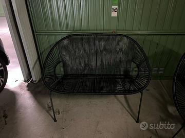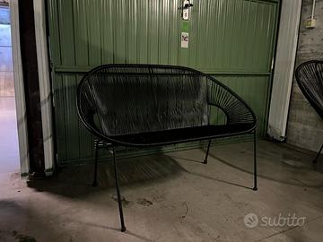 Divanetto e poltroncine da esterni in acciaio e filo di resina nero.