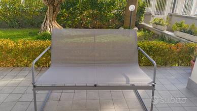 Come da titolo vendo questo set comprensivo di: - Divanetto due posti - Due sedie - Tavolinetto con superfice in vetro scuro come si intravede nelle immagini, il tavolinetto ha qualche piccolo punto di ruggine facilmente rimuovibile. Il set per il resto è in ottime condizioni è stato comprato l'estate scorsa, tenuto sempre fuori sotto un porticato quindi non alla pioggia diretta. Il set è da venire a ritirare a mano con formula visto e piaciuto. Prezzo non trattabile.