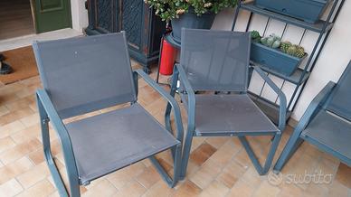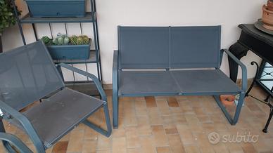 set divanetto da terrazzo o patio struttura in robusto acciaio ver iciato a polvere grigio antracite tessuto in nylon anti uv . 1 divanetto, 2 poltrone,1 tavolino con piano in vetro temprato . consegna compresa a mano a seconda della distanza.