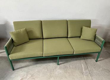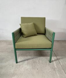 Materiale: Struttura in alluminio verniciato a polvere. Inserti in corda intrecciata. Tessuto in fibra tessile Olefin