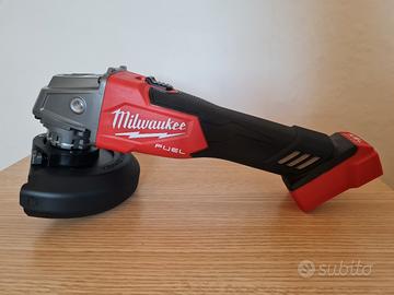 Set di elettroutensili Milwaukee, composto da: Trapano a percussione, Avvitatore ad impulsi 1/4″, Seghetto dritto, Sega circolare, Smerigliatrice Angolare, Torcia Led 120lm, due Batterie, un Caricabatterie rapido, il tutto riposto all'interno di una comoda borsa in tela per il trasporto.