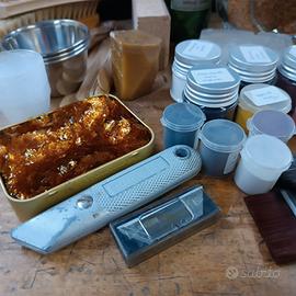 Cassettiera legno a 3 cassetti, 8 kg , contenente accessori e materiale per restauro o finitura, colla pennelli, mordenti, terre, coloranti, spatole, tazze e contenitori, tessuti e panni, ecc... Quello che si vede in foto. 70 EURO PER IL LOTTO, NON DIVISIBILE, NON TRATTABILI, NO IMBALLAGGIO, NO SPEDIZIONE, SOLO PAGAMENTO PER CONTANTI, ASTENERSI PERDITEMPO. Grazie. La lista degli articoli in vendita viene aggiornata costantemente, se l'articolo è presente in lista significa che è ancora disponibile.