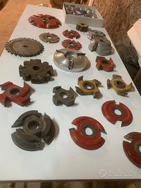 Vendo lotto completo di frese e teste portacoltelli per toupie / combinata da falegnameria, come da foto.