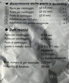 Una diametro 68mm, l’altra 86mm, con punte di centraggio attacco sds.