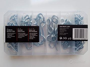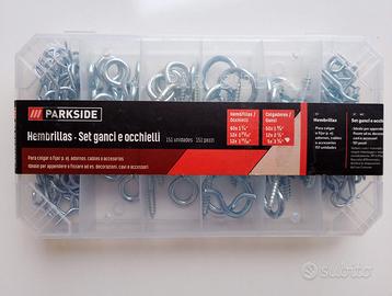 Vendo 2 set di ganci e occhielli, di marca PARKSIDE, che si trovano all’interno di pratiche confezioni per il trasporto in sicurezza e comodità.
