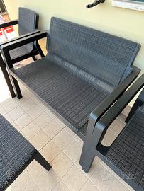 Set giardino in rattan composto da due sedie comode panchina 2/3 posti e tavolino colore antracite ottime condizioni usato una sola stagione. Ritiro a domicilio no spedizione