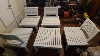 4 poltrone 1 tavolino Plastica colore bianco Senza cuscini