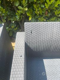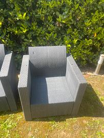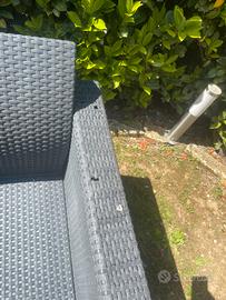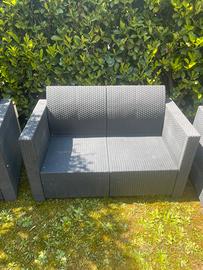 Vendo set KETER da esterno ideale per giardino, terrazzo o porticato, composto da: • 1 Divanetto a due posti • 2 Poltrone coordinate Il set è molto robusto e confortevole. Insieme ai mobili sono inclusi tutti i cuscini originali (non visibili in foto ma in ottimo stato), che rendono la seduta molto comoda. Condizioni dell'oggetto: Il set è stato utilizzato e presenta i normali segni del tempo. Nello specifico: • Il divanetto e una poltrona sono in buone condizioni generali. • Nota bene: Una delle due poltrone presenta dei danni da grandine sulla struttura (come mostrato nelle foto di dettaglio), ma è ancora solida e utilizzabile. Prezzo: € 80 Info utili: • Ritiro a mano a Seveso • Formula visto e piaciuto. • Disponibile per ulteriori foto o info su richiesta.