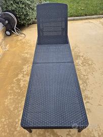 arredo realizzato in resina plastica di alta qualità effetto rattan (poltroncine e divanetto) e resina rinforzata (lettino), resistente a sole e pioggia, non arrugginisce e non richiede manutenzione. Ideale per esterno e interno.