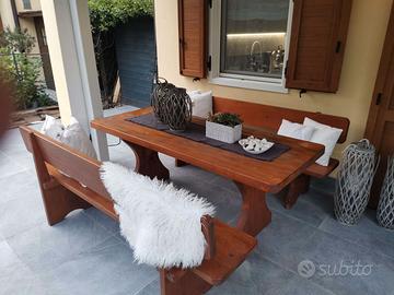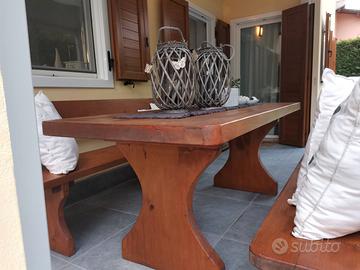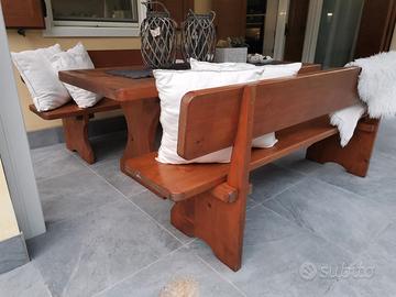 FANTASCTICO SET TAVOLO CON PANCHE IN LEGNO MASSICCIO RICAVATO DAL PIENO , PRODOTTO ARTIGIANALE IN ALTO- ADIGE.