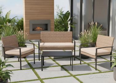 Set Relax Giardino in Acciaio e Resina effetto legno ultra resistente Divano 2 Poltrone Tavolino Cuscini a 350euro Set Giardino effetto Rattan a 300euro whatsapp 351 73 02 126