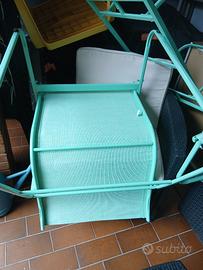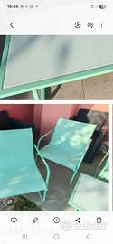salotto da giardino come nuovo, color verde acqua con sedile 2 posti 2 sedute singole e tavolino. no spedizione