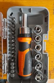 set da 23 pezzi giraviti e chiavi a bussola come da foto in custodia porta attrezzi.