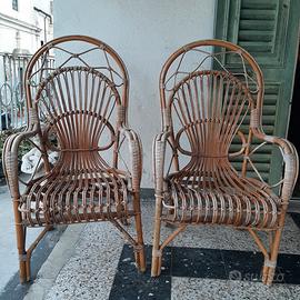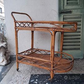 Set in midollino anni '70 quattro poltrone, di due diversi tipi, tavolino e carrello portabottiglie. In buono stato, con difetti. Se interessati mando foto in privato