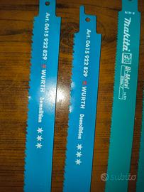 n.9 lame per metallo e materiali industriali combinati. ferro, legno, PVC, gomma, guaina ecc. speciali per demolizione, vari marchi... Makita, Wurth, Morsè U.S.A.