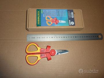 La forbice art. LA112216 ha doppio isolamento fino a 1000 volt secondo le norme VDE, lama seghettata in acciaio inossidabile 8CR14, impugnatura in materiale bicomponente antiscivolo, asola taglia cavi, lunghezza 160mm,