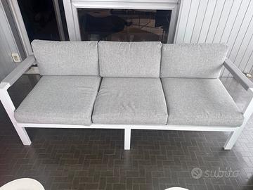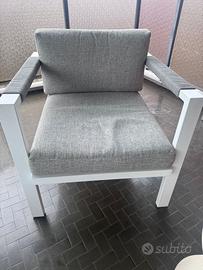 Vendo mobili da giardino set composto da divano due poltroncine panca e tavolo da sei posti , il rivestimento è sfoderabile ed è in perfette condizioni, vendo per cambio casa