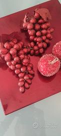 Porta la magia del Natale a casa tua con questo elegante set decorativo: un piatto quadrato rosso lucido con grappoli d’uva glitterati e sfere brillanti in stile natalizio. Perfetto come centrotavola, su una credenza o come tocco festoso in salotto.