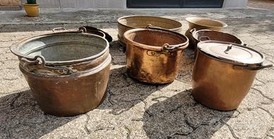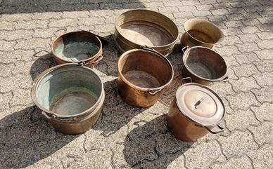 Vendo per problemi di spazio set paioli in rame, (un paio in ottone), perfetti come porta vasi o oggetti da arredamento. Prezzo visti e piaciuti tutti in blocco a 150€, altrimenti possibile anche acquisto singoli pezzi previa visione.