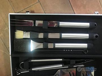 Set 9 Utensili Accessori per Barbecue BBQ in Acciaio inossidabile con Valigetta in acciaio antiurto.