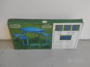 Come da titolo, pratico set da pic nic per bambini, composto da tavolo con 4 sedute.