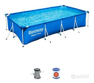 Set piscina fuori terra rettangolare Steel Pro da 300x201x66 cm blu