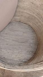 Bel set da giardino in Bamboo composta da due poltrone bombate e tavolino. In origine erano marroni io le.ho dipinte di banco. Sono un po' scrostate ma nada carteggiare e ridipingere o riportare al colore originale. Un po' da rimodernare. Molto bello comprensivo di cuscini.