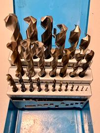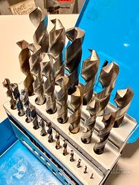 Set completo di punte trapano fresa centro cnc HSS professionali 1–13 mm passo 0,5 (25 pz) con scatola metallica da banco – progressione 0,5 mm usate Provenienza officina meccanica cnc le punte possono avere segni di lavorazione condizioni come da foto