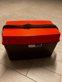 1 contenitore rettangolare di plastica trasparente con coperchio arancione