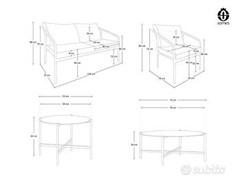 Set salotto da giardino modello Ischia by Samira composto da 5 elementi: un divano due posti, due poltrone e due tavolini. Gli elementi sono costituiti da una robusta struttura in metallo nero verniciata a polvere e sedute e spalliere in poliestere idrorepellenti e sfoderabili, materiali ideali per uso esterno. Salotto da esterno leggero e facile da spostare, grazie al suo design semplice e lineare, sarà la soluzione perfetta per vivere in totale relax gli spazi all’aperto come giardino, verande e terrazza. Facile da montare grazie alle istruzioni che troverete al suo interno.