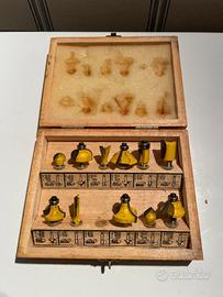 Vendo in blocco set di sclpellini e frese nel loro astuccio in legno originale gli scalpelletti non sono stati mai usati, le frese un paio di volte e ne manca una perchè persa.