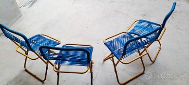 Vendo 4 sedie da campeggio, struttura in acciaio con seduta e schienale in corda tesata in pvc. Ripiegabili. Usate ma in buono stato. No spedizioni.